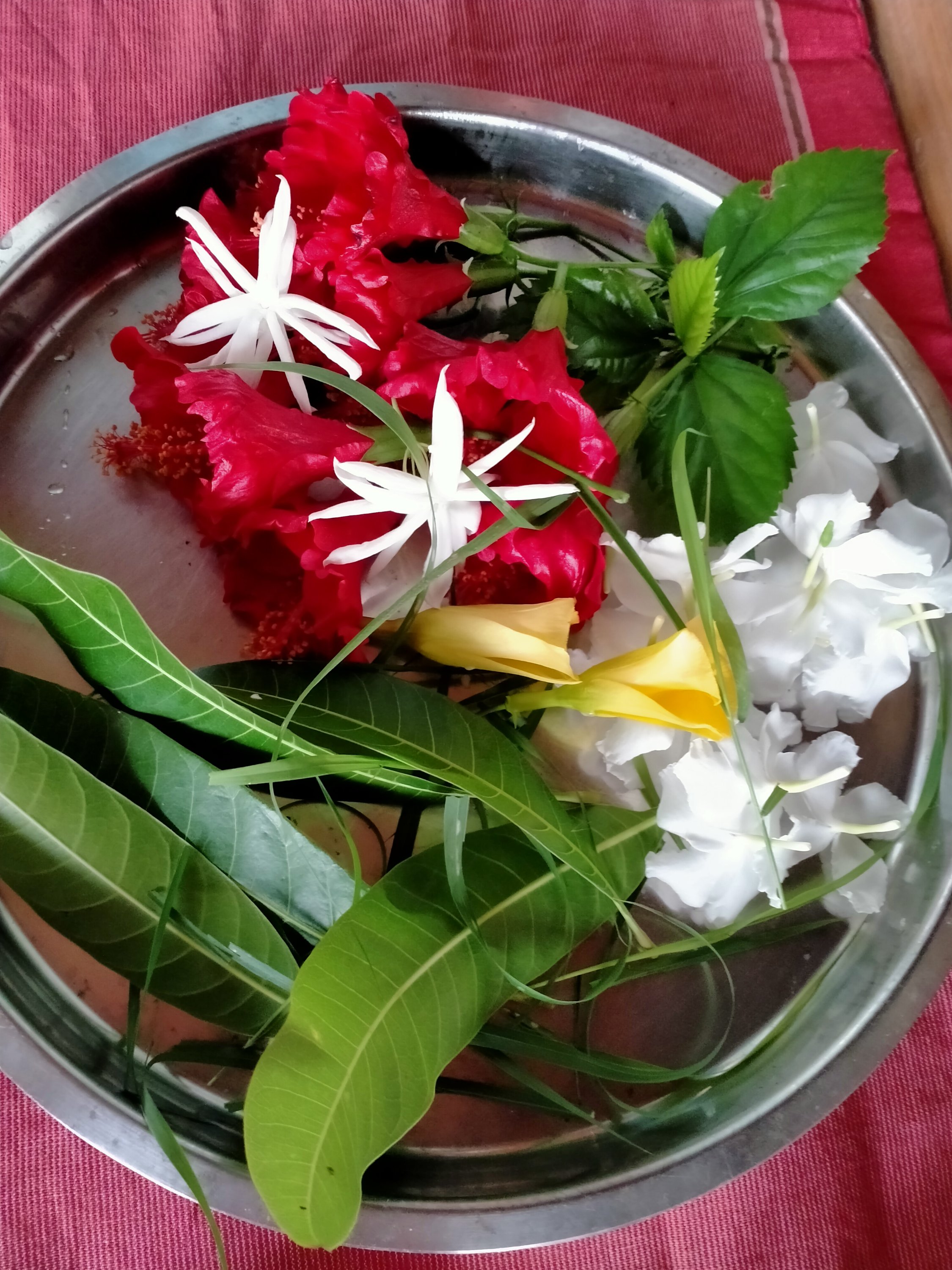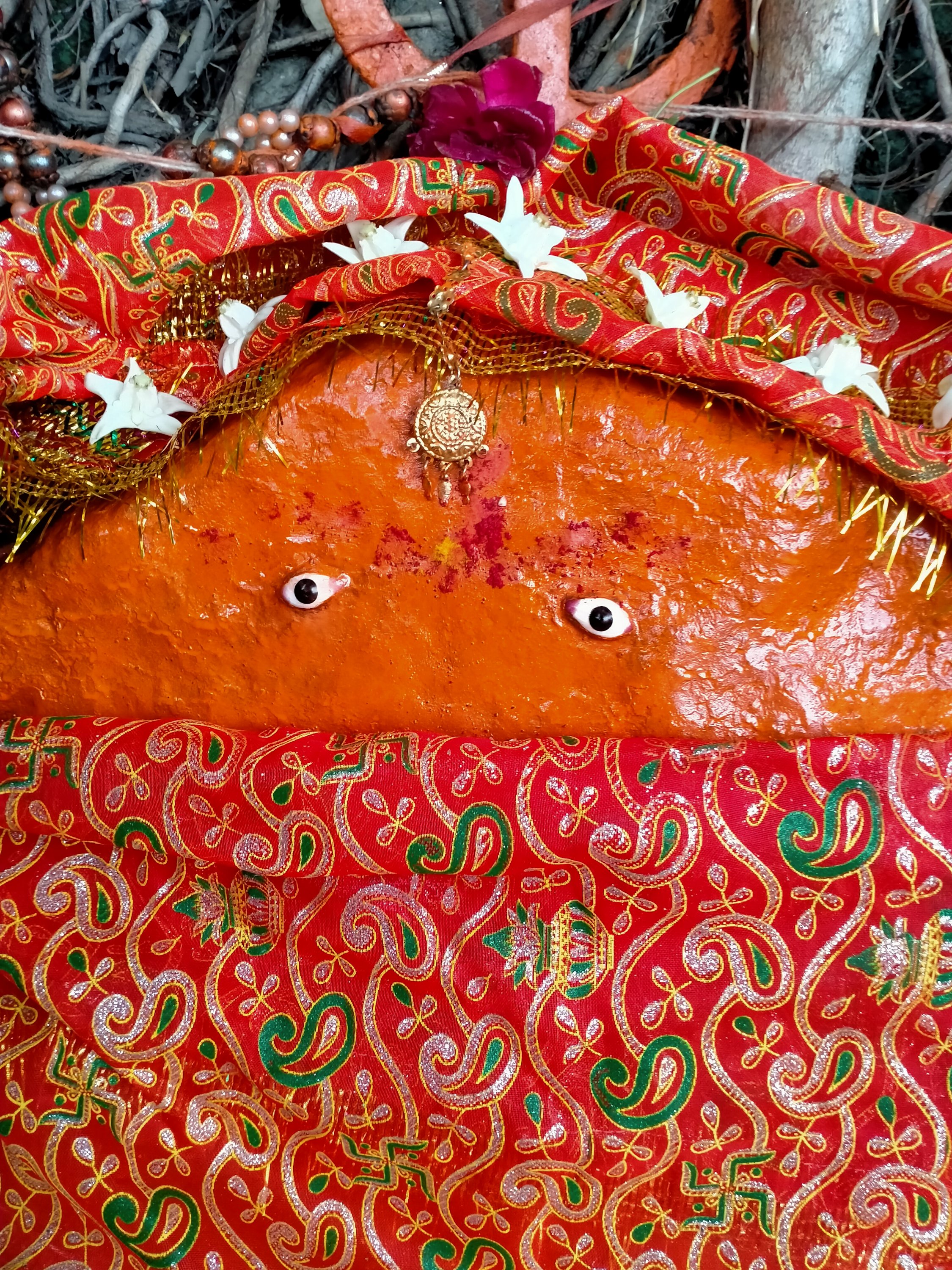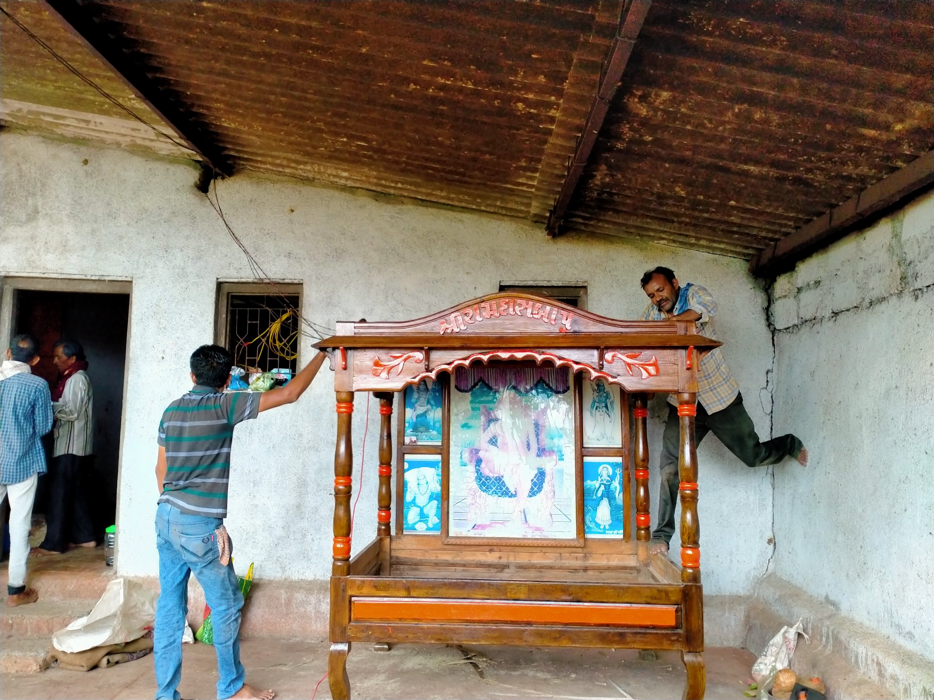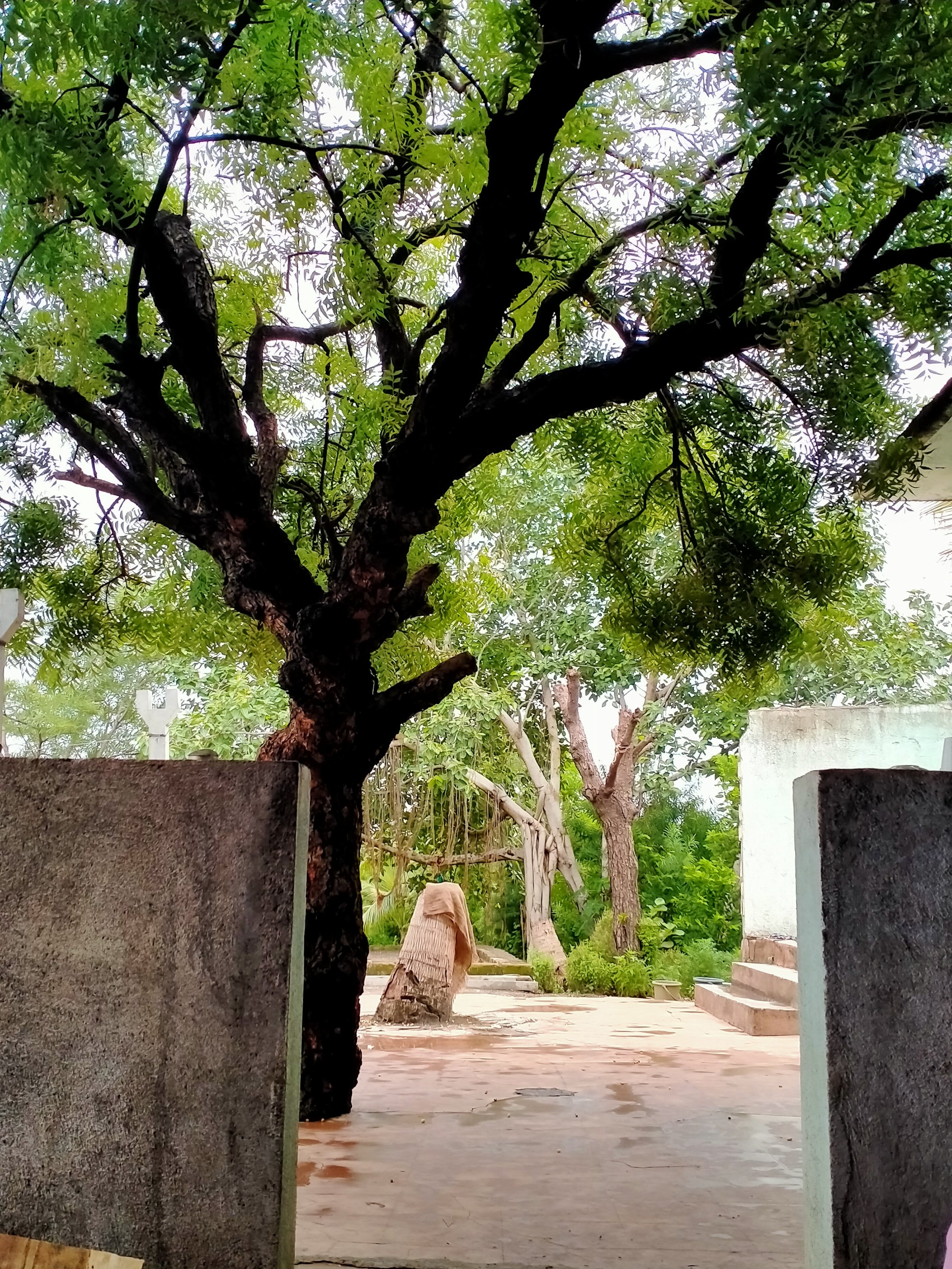 We alternate moments of pujas, meditation with collecting plants, drying seeds & eating fruits (here Jamun black berry a fruit Ram ate during His exile). We are cooking on an old wood stove. Some days we meet peacocks, lezards, mongoose. We repainted the asana of Ram Das Bapu saint. I discovered two lemon trees in the garden with some green lemons.