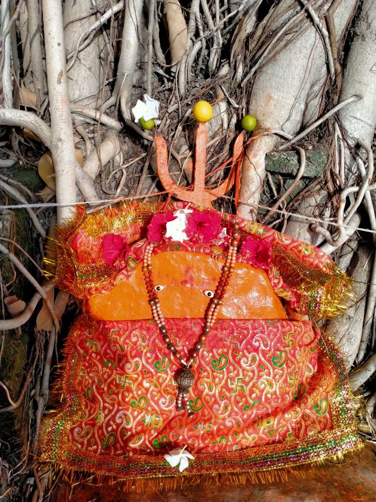 This has been the place of an ancient Ramdev Pir Mandir on which a big bannyan tree grew. And in this bannyan tree lives Divine Mother Khodyar Mata (a form of divine mother worshipped in Gujarat & Rajasthan). Here lived other two sadhus and their samadhis are present and venerated. (See pictures of their samadhis in the article called Global vision of Kadyali place).