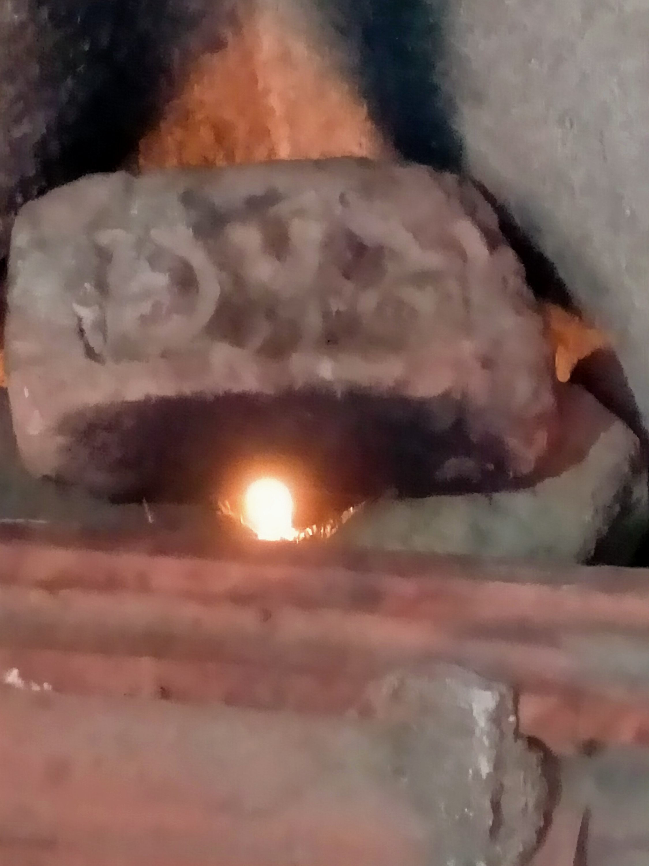 Another local devotee makes the fire in old style blowing in a pipe to wake up the flames. We have tea. After tea I pick-up flowers, durva grass, mango leaves for the pujas and light the lamps to all deities.
