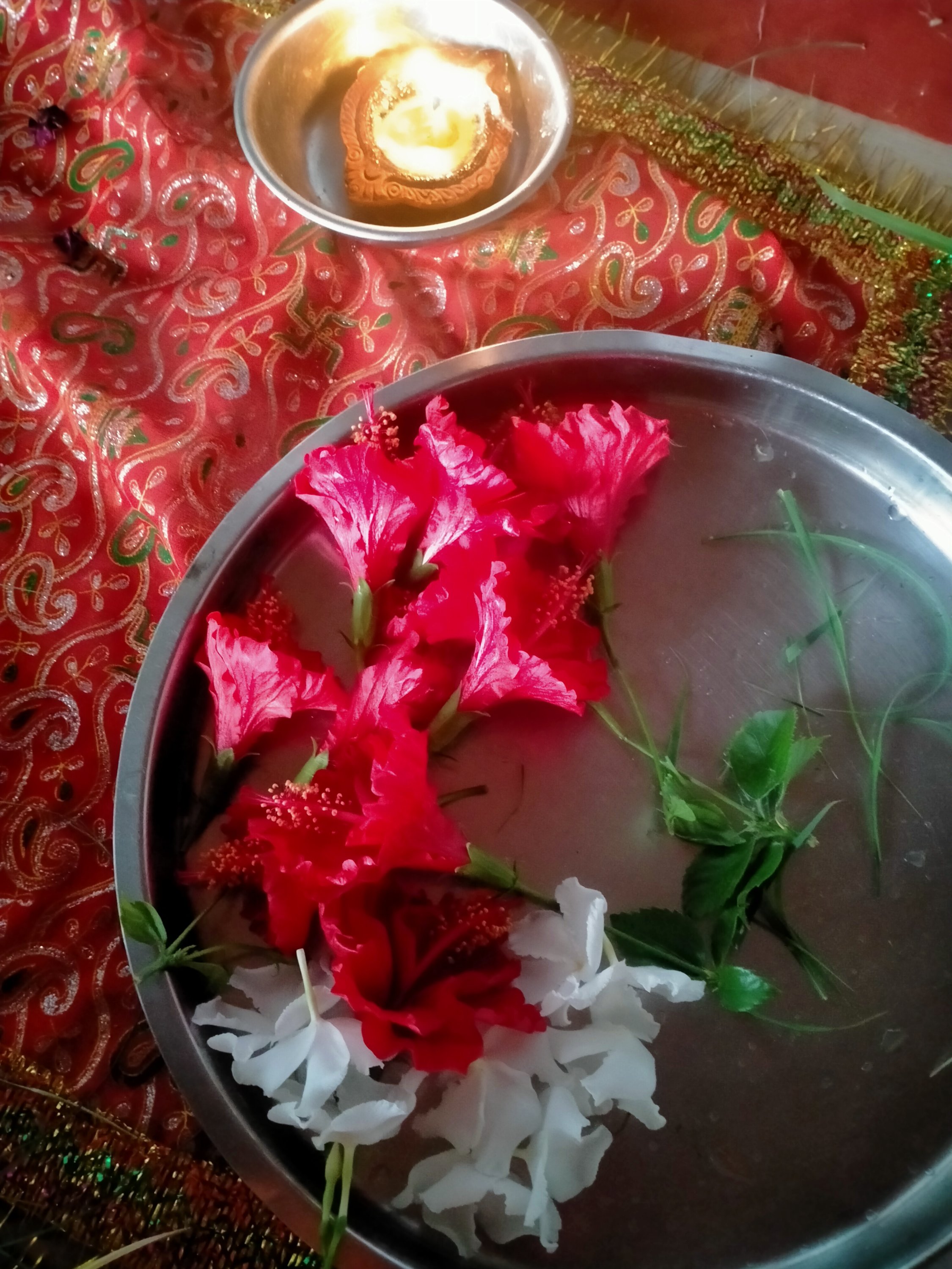 The pujas start. Today it was a heavy rain but we continued the rituals until I stopped my phone so that water is not destroying it…