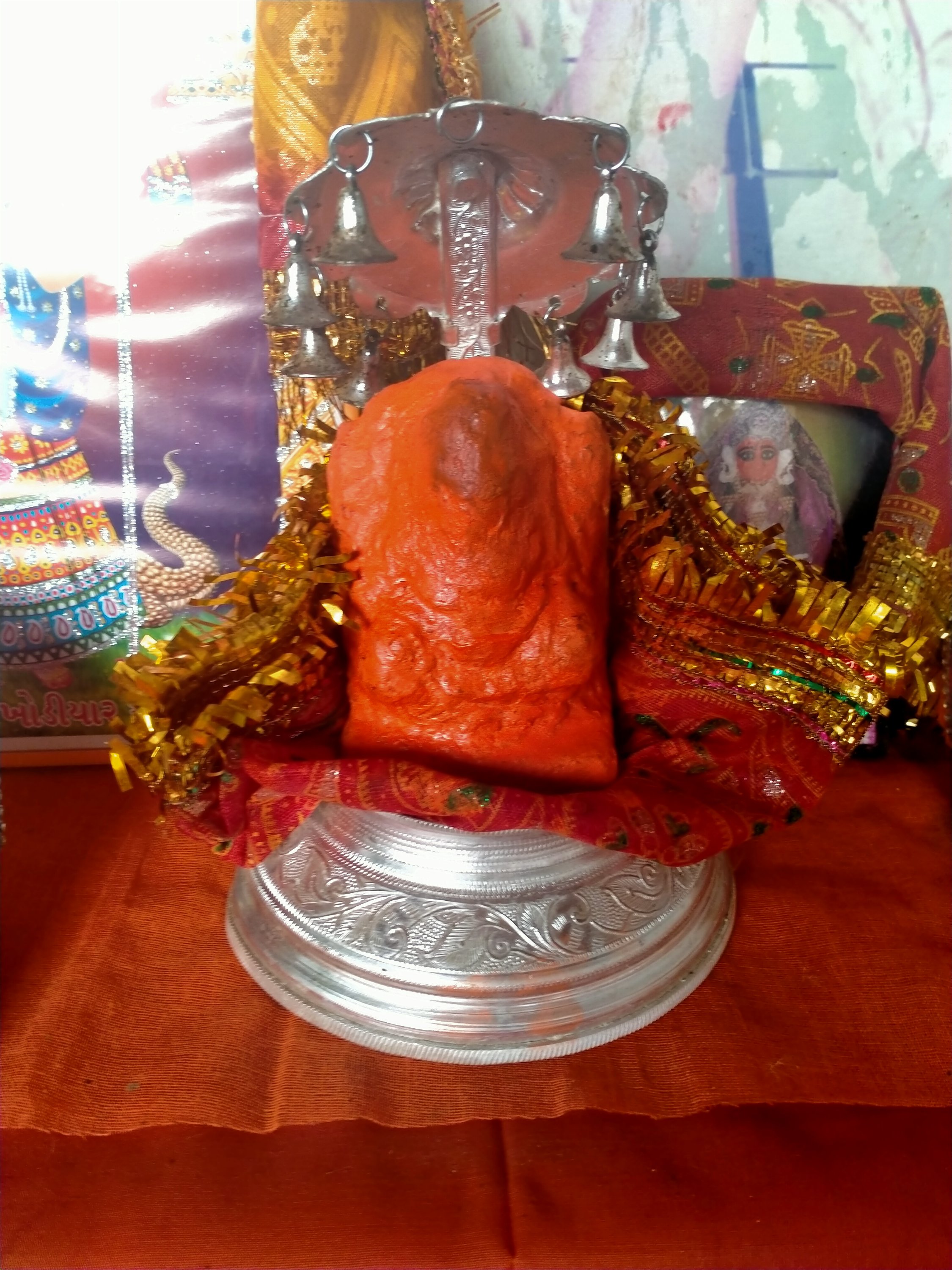 A new Khodyal Mata frame (Divine Mother with the crocodile) & Girinar Mountain (famous mountain of Gujarat) have been added to the sacred family. I brought my luggage from Junagadh small ashram and I added some small murtis too (Ram Darbhar, Hanuman, Kali Maa, Shivji Nandi, Annapurna Devi, Vrindadevi. Tomorrow we will do abhishekam (sacred bath of the deities).