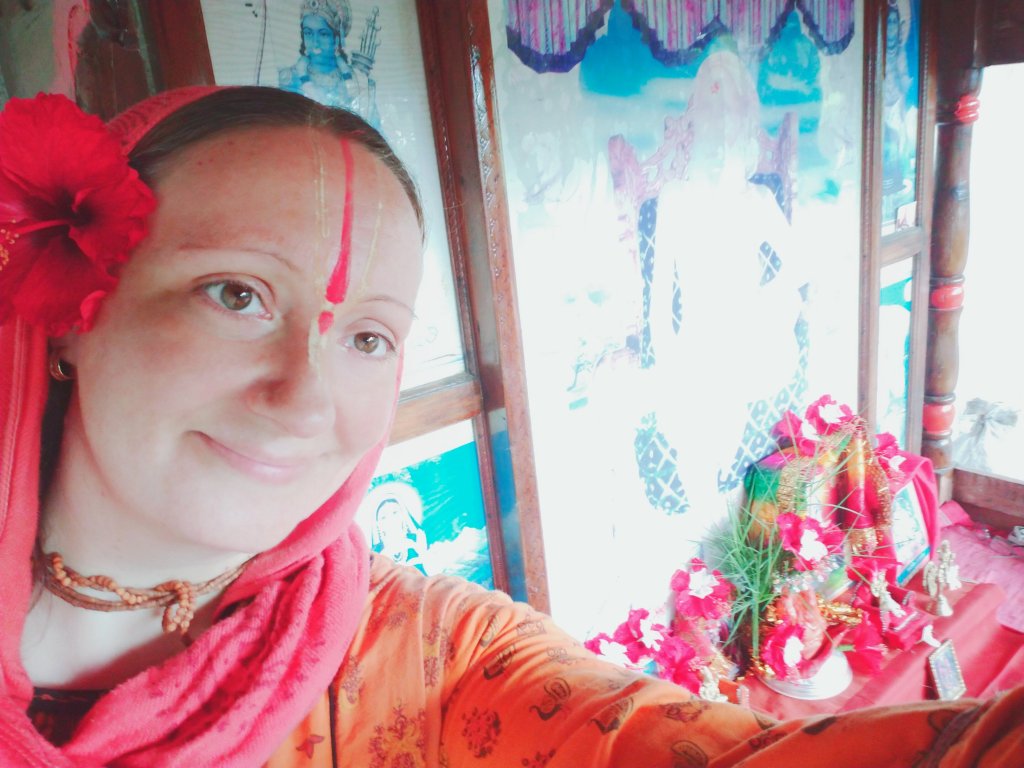 The puja set has been renewed as well. With a big lamp, big bells, oil lamp… Guru Purnima will be amazing with all this… Krishna joined us too… I prepare the room mandir to install Him. Jai Sri Krishna ! Jai Gurudev !