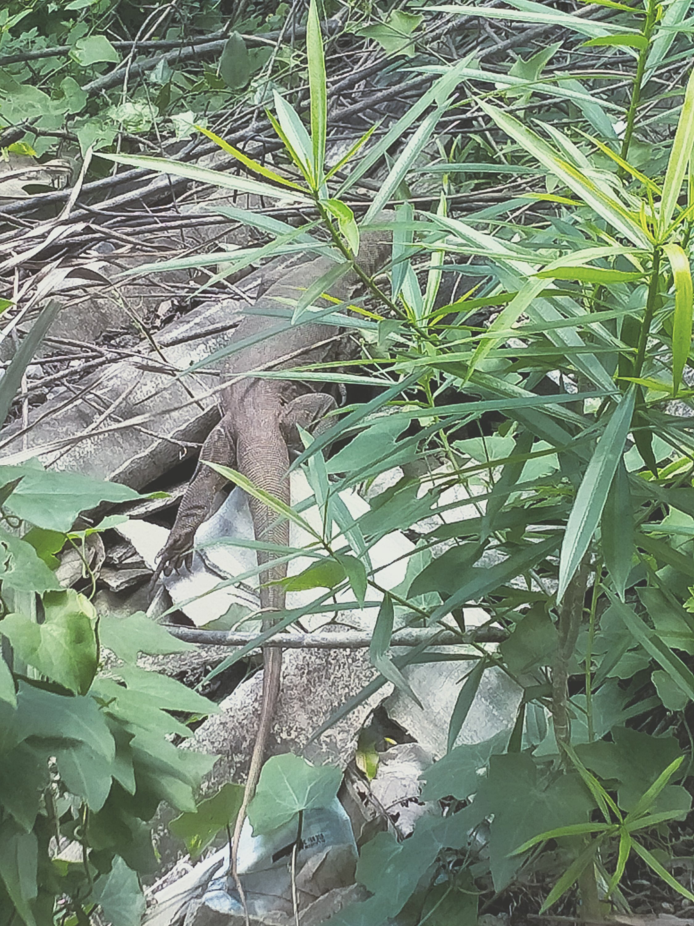 A new visitor came to our Jungle Ashram : a huge lezard. I have also seen a porcupine and a boar… The peacocks started to come more often. There are always two three around.